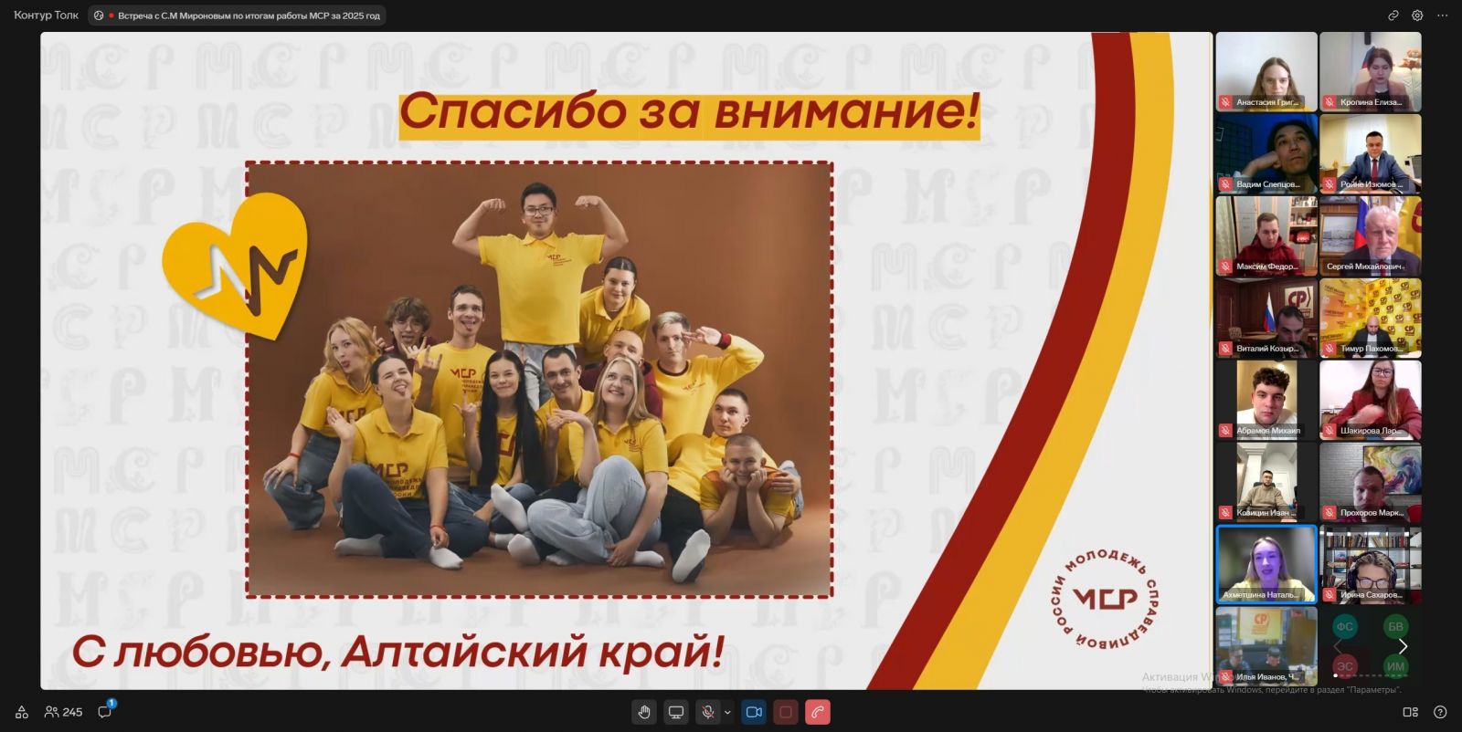 Мы в топе! "Молодёжь СПРАВЕДЛИВОЙ РОССИИ" в Алтайском крае отчиталась перед Сергеем Мироновым о своей работе за 2025 год