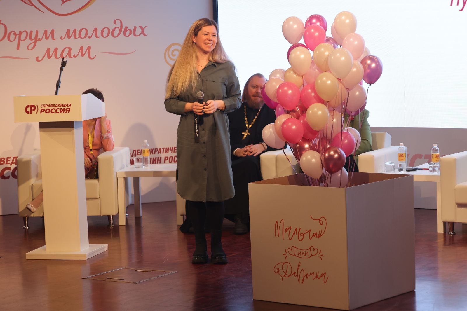 На полях всероссийского Форума молодых мам развернулась насыщенная интерактивная программа: работали тематические мастер-классы, организованные представителями партии, а также выставка-ярмарка. Для всех желающих была доступна фотозона, где участницы могли сделать памятные снимки. Особую атмосферу праздника создали творческие коллективы. Перед гостями выступил коллектив детей и молодёжи с нарушением слуха "Ангелы Надежды", а также юные блогеры, которые исполнили песню, посвящённую матерям. В знак признательности и уважения курсанты вручили женщинам цветы. Кульминацией панельной дискуссии стал необычный сюрприз. Одна из участниц форума прямо на мероприятии узнала, что ее будущий ребенок – доченька. Этот момент стал одним из самых запоминающихся и символичных, подчеркнув главную тему форума – материнство, жизнь и продолжение рода.