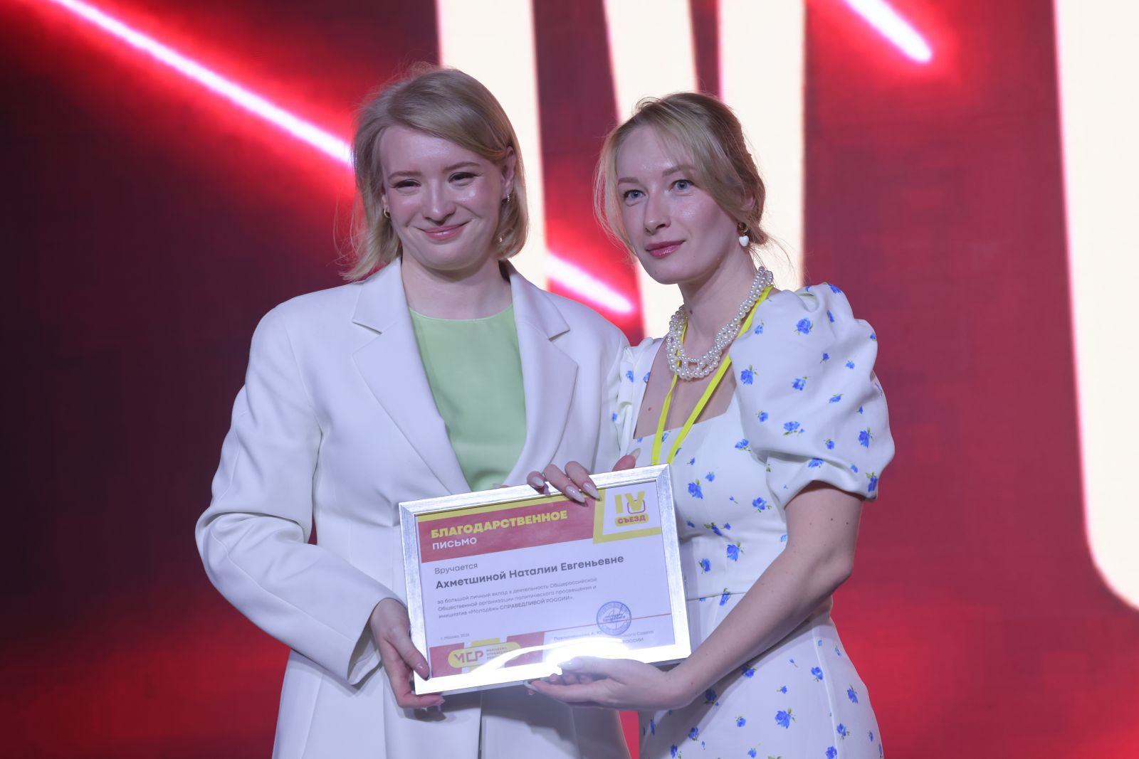 В своей речи он поблагодарил участников съезда за доверие, рассказал о годах работы с Анастасией Павлюченковой и обозначил задачи МСР. «Если Координационный совет сформулировал задачу «сохранить и приумножить», то у нас есть и партийная задача – получить минимум второе место на выборах. У молодёжи есть и электоральные задачи. Наша цель в том, чтобы как можно больше справедливых молодых людей прошло в различные региональные и муниципальные советы, собрания», – напутствовал он.